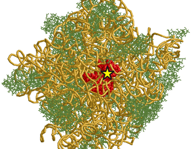 Ribosomen sind Molekülkomplexe aus RNA und Proteinen. Sie sorgen im Cytoplasma der Zellen für die Produktion von Proteinen. Dabei wandeln sie die genetische Information aus mRNA-Sequenzen in eine Abfolge von verknüpften Aminosäuren um. Dies geschieht in atemberaubender Geschwindigkeit und mit einer sehr geringen Fehlerrate. Die Ribosomen bestehen aus zwei Untereinheiten, wovon die kleinere für die Interpretation des genetischen Codes verantwortlich ist. Die große Untereinheit fügt die einzelnen Aminosäuren zu einer langen Peptid-Kette zusammen, die schließlich die Proteine bilden. Der wichtigste Mechanismus, die Bildung der Peptid-Bindung aufeinander folgender Aminosäuren, erfolgt im Peptidyl-Transferase-Zentrum der großen Untereinheit. Dieser Bereich des Ribosoms hat sich in der evolutionären Entwicklung kaum verändert und ist bei allen Organismen im Wesentlichen gleich strukturiert. Erkenntnisse über dessen Funktionsweise sind daher von fundamentaler Bedeutung für die Wissenschaft.