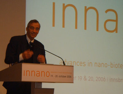 Prof. Dr. Tilmann Märk, Vizerektor der Leopold Franzens Universität Innsbruck hob in seiner Eröffnungsansprache die Wichtigkeit der interdisziplinären Zusammenarbeit für Erfolge auf dem Gebiet der Nano-Biotechnologie hervor: „Praktisch alle naturwissenschaftlichen Fächer, von Physik über Chemie, bis Biologie und Medizin werden von Nano-Biotechnologie berührt. Als Querschnittsdisziplin führt sie das Beste aus den beiden Innsbrucker Universitäten zusammen.“