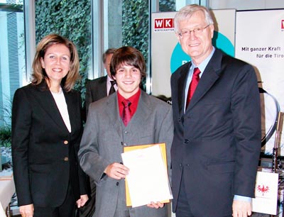 Dass die Diplomarbeiten bzw. die Dissertation mit „sehr gut“ approbiert sein mussten, versteht sich von selbst. Macht das ein wenig stolz? „Ja“, gestand der Ausgezeichnete. Rektor Univ.-Prof. Dr. Manfried Gantner und Vizepräsidentin Patrizia Zoller-Frischauf gratulierten im Festsaal der Wirtschaftskammer Tirol herzlich. Die Kooperation zwischen WKT und LFU Innsbruck soll – so sind sich beide Partner einig – 2008 stattfinden.
