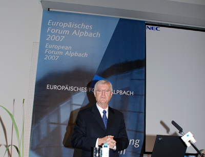 In der anschließenden Begrüßungsrede im Congress Alpbach hob Rektor Manfried Gantner die Verbesserungen der organisatorischen und materiellen Rahmenbedingungen an der Universität Innsbruck hervor. „Die materiellen Rahmenbedingungen bilden aber nur ein Brückenlager, für eine erfolgreiche Zukunft dieser Fakultäten. Ebenso wichtig ist das Widerlager…, die Beantwortung der Sinnfrage der betreffenden Wissenschaft. Erst materielle Ausstattung und ideelle Zielklarheit zusammen sichern den nachhaltigen Erfolg einer Wissenschaft“, so Gantner.