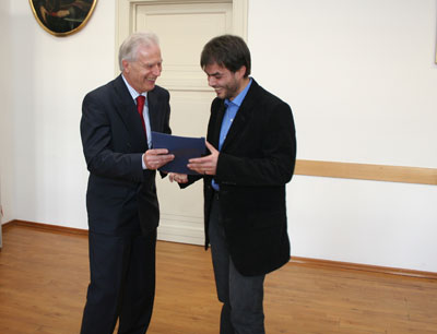 „Die Förderung bleibt auch 2008 in der gleichen Summe bestehen“, verkündete Karlheinz Kolb bei der Vergabefeier die erst kürzlich von Swarovski getroffene Entscheidung über die Fördersumme für das laufende Jahr. Vizerektor Märk bedankte sich im Namen der Universität und betonte die Bedeutung von Drittmitteln für die Forschungstätigkeit. „Im Rahmen dieses Förderungsfonds stellt D. Swarovski und Co. der Universität Innsbruck jährlich einen namhaften Betrag zur Verfügung, mit dem nach einem sorgfältigen externen Begutachtungsverfahren exzellente, innovative Vorhaben gefördert werden“, so Märk, der die eingereichten Projekte vorstellte.