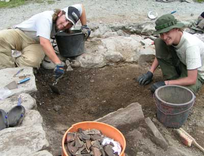 Der Platz der St. Nikolauskirche ist aber nicht nur für die Erforschung des Frühmittelalters von großer Bedeutung. Nachdem schon in den 90er Jahren die Reste eines spätantiken Kalkbrennofens sowie ein Urnengrab aus römischer Zeit, das in einem vermutlich viereckig gemauerten Grabbau eingelassen war, entdeckt wurde, fanden sich auch heuer wieder in tieferen Schichten Fundstücke, wie eine Gewandnadel, eine kleine Bronzenadel und große Mengen an Keramik, die eine ältere Nutzung des Platzes bereits in der römischen Epoche belegen.