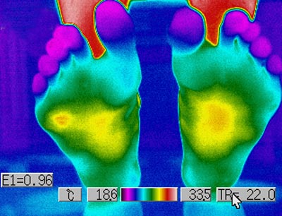 Ein weiteres Forschungsfeld ist die Verbesserung des Komforts und die Optimierung des Mikroklimas im Skischuh. „Dadurch könnte die Durchblutung, das subjektive Wohlbefinden und damit das Fahrgefühl verbessert werden“, sagt Prof. Nachbauer. Am Forschungsinstitut für Textilchemie und Textilphysik der Universität Innsbruck in Dornbirn wird derzeit eine Apparatur zur Bestimmung von Wärmedurchgang und Feuchtigkeitstransport in textilen Strukturen aufgebaut. Diese soll in Zukunft in einer Klimakammer eingesetzt werden, um die Verhältnisse beim Skifahren zu simulieren. Am Technologiezentrum für Ski- und Alpinsport wurden zur Erfassung des Klimas im Skischuh mehrere hauchdünne Temperatur- und Feuchtigkeitssensoren eingebaut. Die Messsignale dieser Sensoren werden mit einem kleinen, kompakten Datenlogger gesammelt, der ebenfalls am Innsbrucker Technologiezentrum entwickelt wurde. Zur Abschätzung der körperlichen Belastung beim Skifahren wird an den Füßen eine Druckverteilungsmessung durchgeführt.