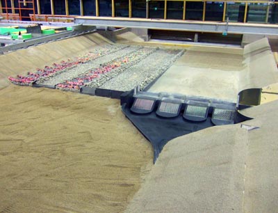 „Das Rampenbauwerk muss an sehr komplexe Anforderungen angepasst werden“, erklärt Aufleger. „Wir haben bei der Sohlrampe eine vergleichsweise geringe Fallhöhe von circa drei Metern, die energetisch genutzt wird. Wir können daher auf eine klassische Stauhaltung und auf Begleitdämme verzichten. Die niedrige Bauhöhe und eine innovative Betriebsweise sorgen dafür, daß der Fließgewässercharakter einschließlich der Dynamik schwankender Wasserspiegel in hohem Maße gewahrt bleibt.“ Da das Bauwerk laut Aufleger keine Barriere darstellt und wichtige Nebengewässer geschaffen werden, ist auch die flussauf- und flussabgerichtete Wanderung von Lebewesen jederzeit möglich. Flexible Öffnungen in der Sohlrampe ermöglichen darüber hinaus ein Eingreifen in die eigendynamischen Entwicklung der oberhalb gelegenen Flussstrecke. „Unsere Kraftwerke für die untere Salzach berücksichtigen damit selbstverständlich auch den Hochwasserschutz“, hebt der Wissenschaftler hervor. Derzeit wird das Konzept in einem physikalischen Modellversuch am Arbeitsbereich Wasserbau der Universität Innsbruck untersucht.