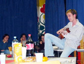 Liedermacher, Dichter und Student Markus JägerDas eineinhalbstündige Programm fand unter dem Motto "Four Letter Words ... Songs and Poems" statt. Verstärkt wurde Markus Jäger bei einigen Liedern durch die bezaubernden Stimmen von Barbara und Linda. Die gut besuchte Veranstaltung diente nicht zuletzt einer Spendenaktion zugunsten der Aidshilfe Tirol, die Informationsmaterial zur Verfügung stellte. Glühwein und selbst gebackene Kekse versüßten den abwechslungsreichen Abend.
