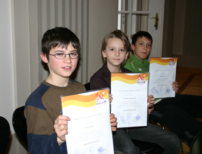 Die Universität Innsbruck lud am 18. Jänner 42 Kinder und ihre Angehörigen zu einer akademischen Feier. Sie zeigten besonders großes Engagement in den Sommerferien und besuchten mindestens vier Kurse der Kinder-Sommer-Uni. Dafür wurden sie mit einem Jungforscher-Diplom belohnt. Den Einzug eröffnete Vizerektor Tilmann Märk, festlich gekleidet in Talar und mit Barett, zusammen mit den Jungforscherinnen und -forschern. Von den Mitgliedern des Universitätsorchesters musikalisch begleitet zogen die Kinder feierlichen Schrittes und unter dem Applaus der Eltern und Freunde in die Aula ein und nahmen am Podium Platz. „Heute ist ein ganz besonderer Tag für euch“, begrüßte Vizerektor Märk die Jungstudentinnen und -studenten. „Leistung soll belohnt werden und ihr bekommt verdienter Weise euer erstes Uni-Zeugnis, dem hoffentlich noch viele folgen!“ Omar Awad war wie in den letzten zwei Jahren der Spitzenreiter, der 9 Kurse besucht hatte. Christoph Beyer, Lisa und Michael Grosstessner-Hain sowie Tobias Somweber gehören auch zu den Dauergästen bei der Kinder-Sommer-Uni und erhielten ebenfalls schon ihr drittes Diplom.