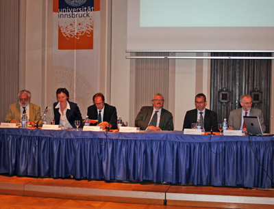 „Fachhochschulen – Exzellenzpostulat – Bildungsauftrag: Wo stehen die österreichischen Universitäten?“ lautete der vollständige Titel der zweiten von der Philosophisch-Historischen Fakultät der Universität Innsbruck organisierten Podiumsdiskussion zur österreichischen Bildungspolitik am 25. April. Hochkarätige Teilnehmer der Universitäten Innsbruck und Klagenfurt, des Management Center Innsbruck, der Arbeiterkammer und der Wirtschaftskammer Österreich garantierten einen inhaltlich fundierten und spannenden Diskussionsabend in der Aula der Universität Innsbruck.