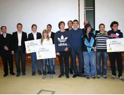 Den ersten Platz im Wert von 4.000 Euro, zur Verfügung gestellt von der Stiftung Südtiroler Sparkasse, gewannen die Südtiroler Schüler Maurizio Giaffredo, Sebastian Cincelli, Francesco Randi, Patrick Harasser und Stefano Chinaglia von der Schule „Liceo scientifico europeo salesiani rainerum” in Bozen. Sie bestachen beim Wettbewerb durch ihre Idee, einen Roboter zu bauen, der Touristen durch Bozen führt.