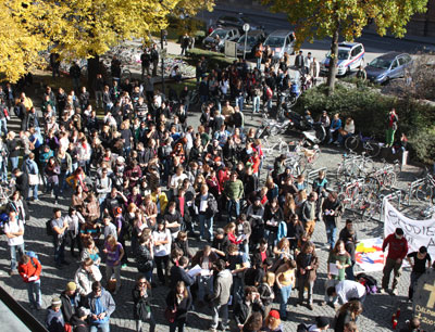 Im Rahmen ihrer Protestmaßnahmen haben Studierende der Universität Innsbruck heute Nachmittag im Anschluss an eine Demonstration die Sowi-Aula besetzt.