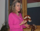 Die Literaturwissenschaftlerin, Dramaturgin und Schauspielerin Sylvia Tschörner, die ihr Studium an der Universität in Innsbruck absolvierte, besuchte in den Jahren 1997-1999 im Rahmen ihrer Bühnen-Ausbildung sechs Monate lang die Schauspielschule von Antonio Fava in Reggio Emilia und nahm an mehrwöchigen Workshops am venezianischen Teatro dell'Avogaria und bei Claudia Contin in Pordenone teil. Ausgehend von dieser praktischen Konfrontation mit dem Universum der „Commedia dell'arte“ brachte die Referentin Einblicke in die Welt der „maschere“, die darin gipfelten, dass die Anwesenden die mitgebrachten Masken selbst einmal anprobieren durften. (bb)