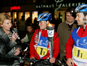 Nicht wie üblich zu Fuß, sondern mit dem Mountainbike wurde das Universiade-Feuer von Turin mit einer Fackel von zwei Studierenden nach Innsbruck gebracht. 70 Tage vor der Eröffnung der Winteruniversiade sind die FackelträgerInnen von Innsbrucks Bürgermeisterin Hilde Zach und Vertretern der ISOC 2005 am Mittwoch in Empfang genommen worden.