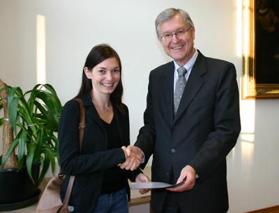 Die 25jährige Bregenzerin Veronika Kiene, eine der erfolgreichen ersten Antragstellerinnen, beschäftigt sich in ihrer Dissertation aufgrund ihrer Erfahrungen im Vorarlberger Kinderdorf mit der Psychologie von außer Haus untergebrachten traumatisierten Kindern und untersucht deren Aggressionspotenzial. Sie freut sich über das Stipendium der LFU Innsbruck: „Dieses Stipendium ermöglicht mir den Besuch von Fortbildungen zu meinem Dissertationsthema, aber auch zu den Forschungsmethoden in In- uns Ausland.“ Kiene ist an einer Tätigkeit an der LFU Innsbruck mit Verbindung von Theorie und Praxis interessiert.