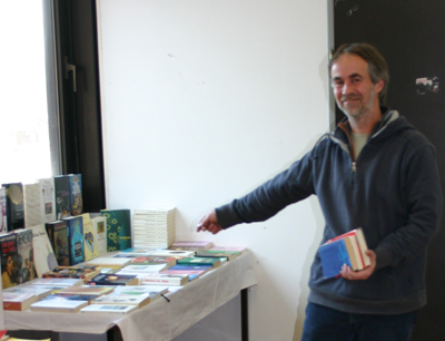 Zwar an einem neuen Standort, aber nach wie vor stark besucht ist der neue, alte Bücherstand an der GEIWI. In einem Seminarraum hinter der Cafeteria hat der Verkäuf er Rolf Pollack seine Literatur wieder aufgebaut. „Ich bin motivierter denn je, und freue mich, einen neuen Verkaufsplatz auf der GEIWI gefunden zu haben, nachdem ich schon an ein Ende meines Bücherstandes glaubte“ freut sich der Verkäufer.