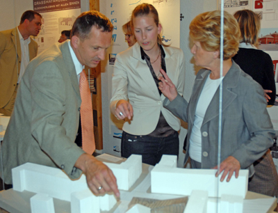 Frau Bgm. Hilde Zach lobte die „Leidenschaft der studentischen Arbeiten“ und freut sich auf deren Realisierung. „Architektur-Studenten sollen verstärkt in die Stadtplanung eingebunden werden.“ Dies sei besser, als internationale Wettbewerbe zu veranstalten. „Das Wissenskapital, das vor der Tür liegt, soll die Möglichkeit zur Umsetzung haben!“ so Zach. Die Bürgermeisterin ließ sich jeden einzelnen Entwurf erklären und pochte auf die verstärkte Zusammenarbeit der Wirtschaft mit der Architekturfakultät, um künstlerisch-wissenschaftliche Bereiche zu stärken.
