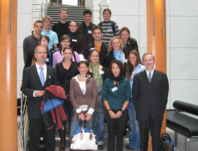 Schon nach kurzer Zeit waren die Teilnehmer für das internationale und das europäische Recht – im Übrigen traditionelle Schwerpunkte der Juristenausbildung in Innsbruck – gewonnen. Dem entsprechend fragten die Studierenden alle Referenten auch nach ihrem individuellen Ausbildungsweg. Der gemeinsame Nenner bei den Antworten waren überdurchschnittlicher Arbeitseinsatz und Begeisterung für Sprachen sowie für europäisches und internationales Recht (bzw. für europäische und internationale Politik). Auffallend oft konnten die Referenten eine Postgraduate-Ausbildung in Brügge vorweisen. Dabei hat jede Karriere einmal klein mit einem Praktikum angefangen – wie bei den Südtirolern Dr. Kathrin Rudolf und Dr. Markus Warasin, die beide den äußerst anspruchsvollen „concours“ geschafft haben und die Exkursionsteilnehmer nun mit Freundlichkeit und Kompetenz durch das zuerst wie ein Labyrinth anmutende Europäische Parlament führten.