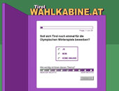 Vergangene Woche wurde an der Universität Innsbruck die wahlkabine.at, eine Online-Orientierungshilfe für die näherrückenden Tiroler Landtagswahlen am 28. September 2003, präsentiert. Das Webtool arbeitet mit aktuellen politischen Fragestellungen, die die Nähe des Informationssuchenden zu einer der kandidierenden Parteien ausloten.