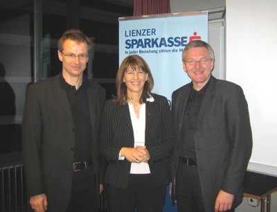Trans IT organisierte diese Veranstaltung gemeinsam mit Frau in der Wirtschaft Lienz und der Bezirksstelle Lienz der Wirtschaftskammer Tirol. Die nächste Veranstaltung aus der Reihe „trans IT Regionalgespräche - Wissenschaft hautnah“ findet am Mittwoch, dem 5.4.2006, ebenfalls in Lienz statt. Prof. Hans Mühlbacher, LFU Innsbruck, informiert zum Thema „Unternehmenserfolg durch Differenzierung“. Für weitere Informationen stehen die MitarbeiterInnen von trans IT zur Verfügung.