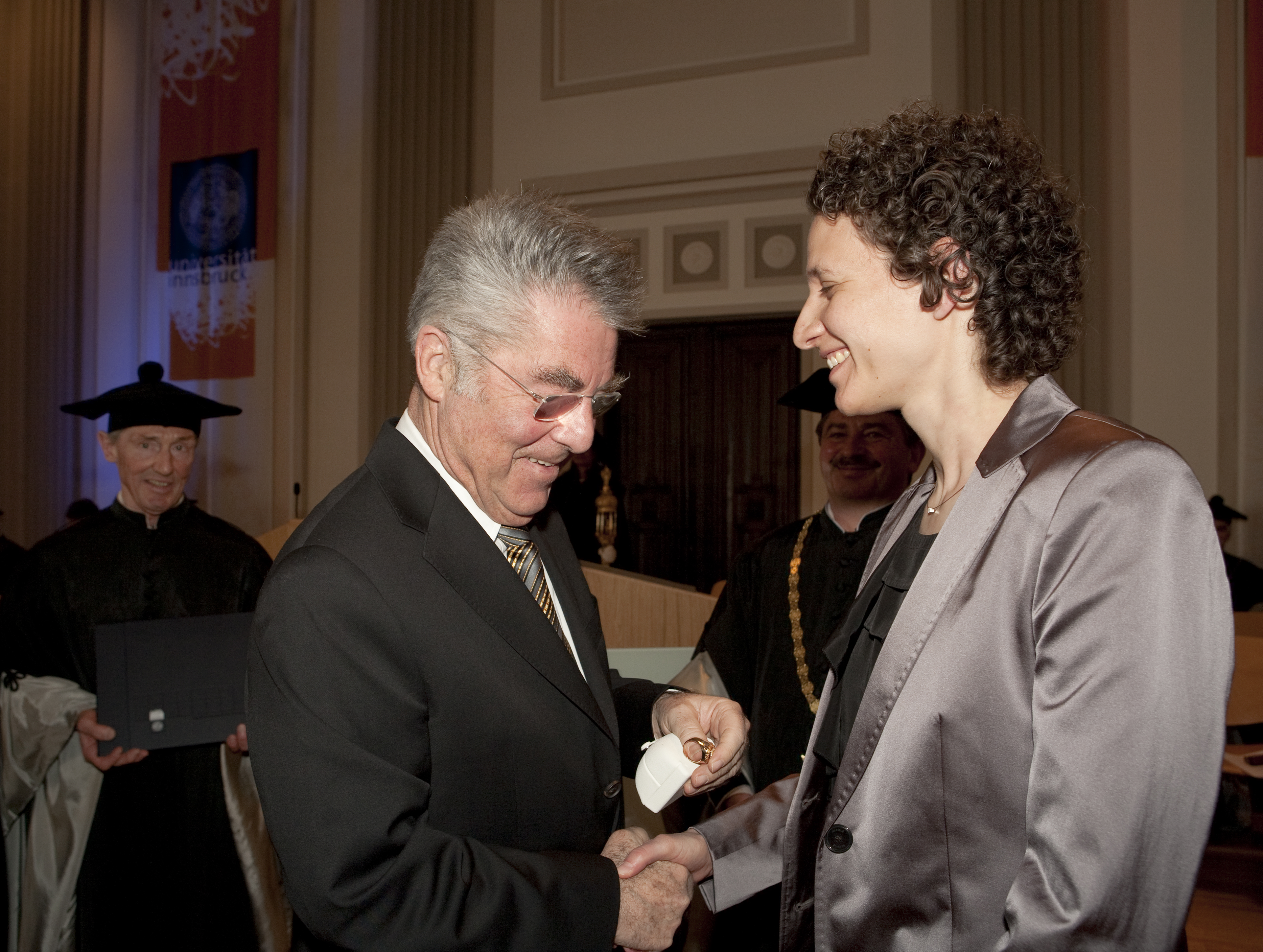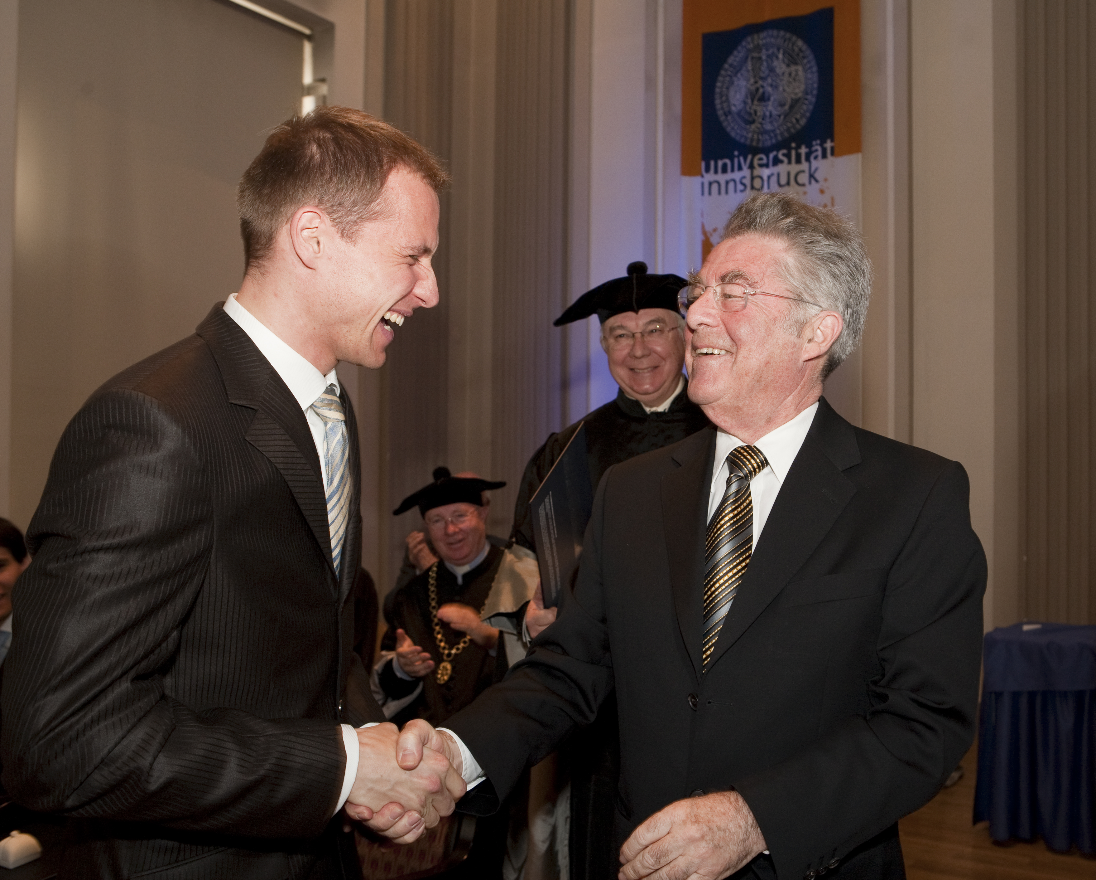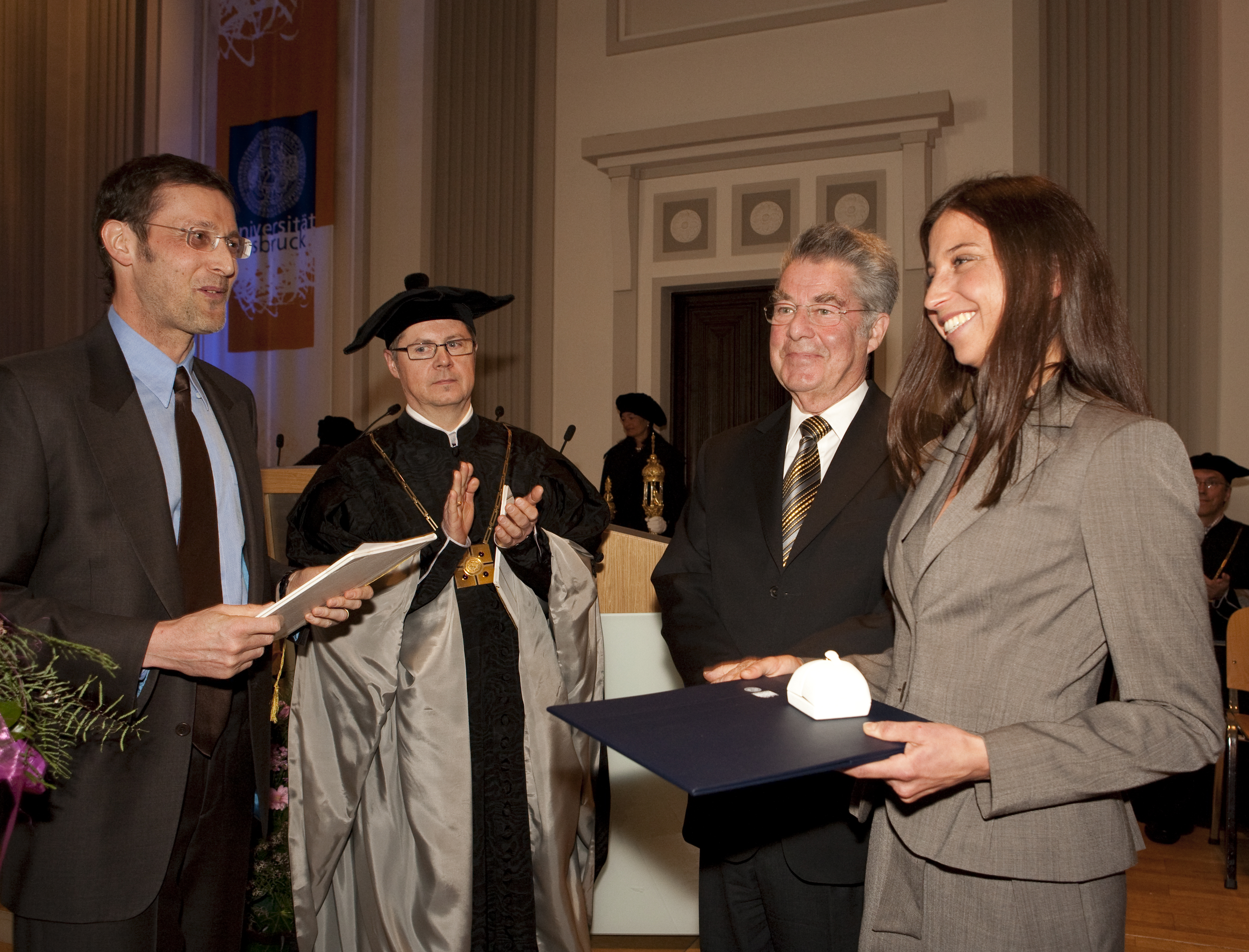 Sechs Doktorandinnen und Doktoranden der Universität Innsbruck wurden am 10. März 2011 im Beisein von Bundespräsident Dr. Heinz Fischer promoviert: MMag. Julia Hautz, MMag. Karin Peter, MMag Katharina Zipser, MMMag. Martin Gächter, DI Julian King und Mag. Gerhard Kirchmair.