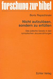 Boris Repschinski SJ: Nicht aufzulösen, sondern zu erfüllen. Das jüdische Gesetz in den synoptischen Jesuserzählungen. (Forschungen zur Bibel. Bd. 120.) Echter Verlag Würzburg 2009. ISBN 978-3-429-03151-0 Das Buch ist auch zum Preis von 25 € im Institutssekretariat erhältlich. |