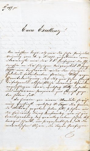 Da hierin von einem Mandate Erwähnung geschieht, welches Dr. Jäger der Gemeinde Mutters gegeben haben soll, so schien mir die Erinnerung dieses Anstandes, vor ich zur Beantwortung des vorallegirten hohen Auftrages schritt, um so wesentlicher, als die moralischen Blösen, die dieser Professor gegeben haben könnte, sich großentheils hiervon abzuleiten scheinen, wobei ich dann zugleich die Aussicht gewann, der so eben erwähnten hohen Weisung Euerer Excellenz um so gründlicher entsprechen zu können.
