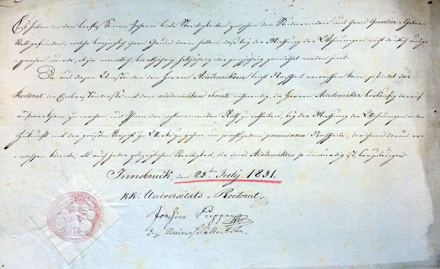 Universitätsarchiv Innsbruck, Akten des Rektorats, 2/R ex 1830/31.