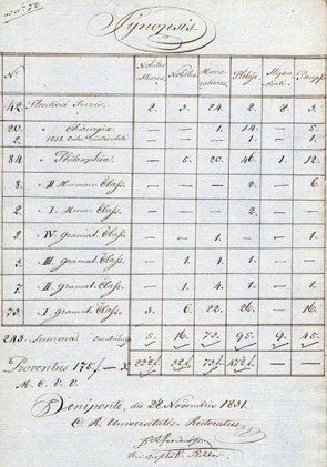 | 202 | " Chirurgiae1831 sostea immatriculati | -- | -- | 1- | 141 | -- | 51 |