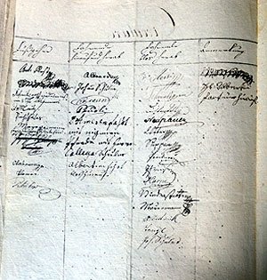 Universitätsarchiv Innsbruck, Akten des Rektorats 96/R ex 1825/26 (hier Abbildung der Rückseite mit Eintragungen der Professoren).