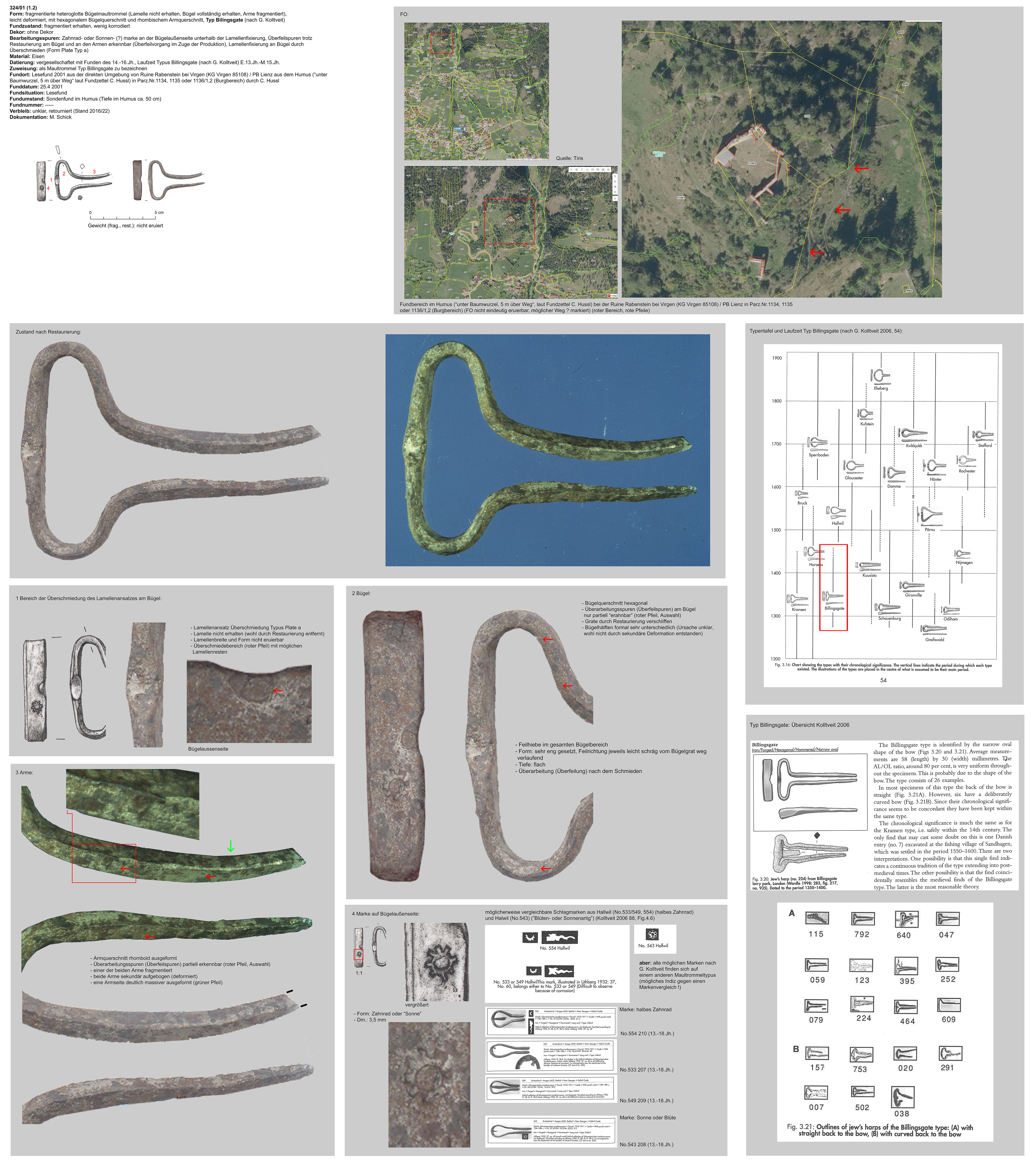 | 324 | wie oben | wie oben | 14.-16.Jh. | Ruine Rabenstein, Virgen | Burg-/Weideareal, Lesefung | Marke auf Bügelaussenseite („Zahnrad“) |