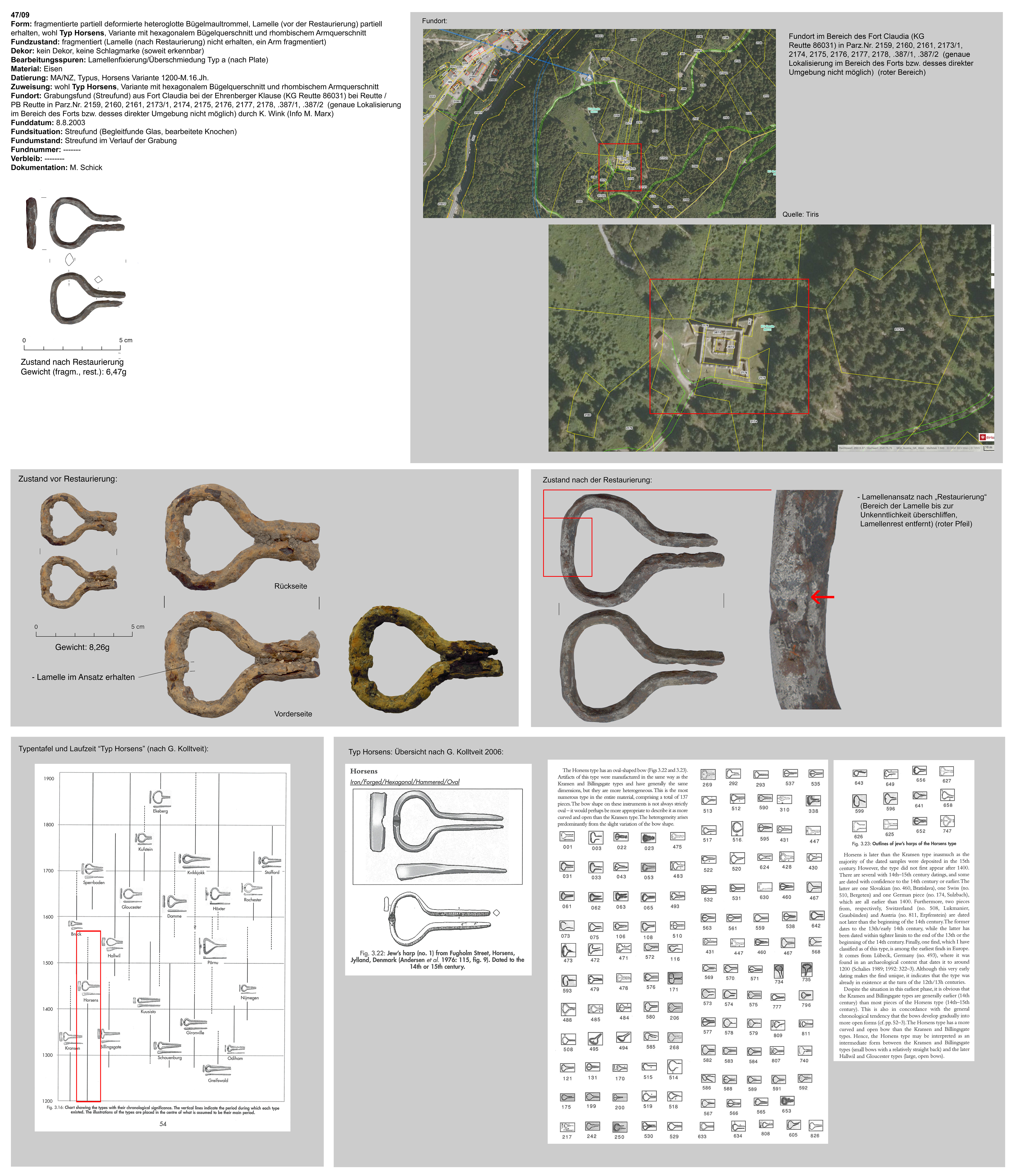 | 47/09 | wie oben | wie oben | Typus | Fort Claudia, Reutte | Burgareal, Lesefund | keine |