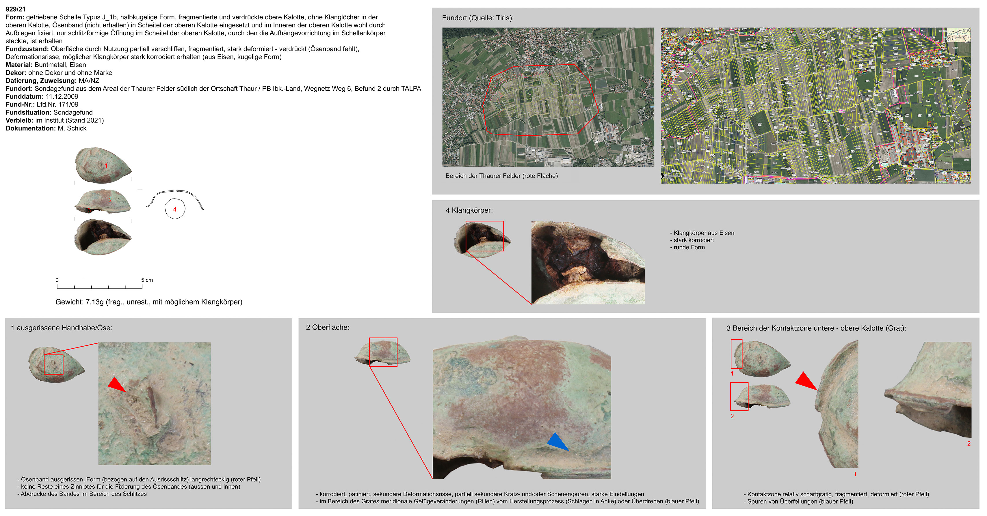 | 929/21 | fragmentiert | kugelig, Eisen | Thaurer Felder südlich von Thaur (Lfd.Nr.171/09, Weg 6, Ibk.-Land (TALPA) | Tallage/Felder (Surveyfund) | nicht erkennbar |