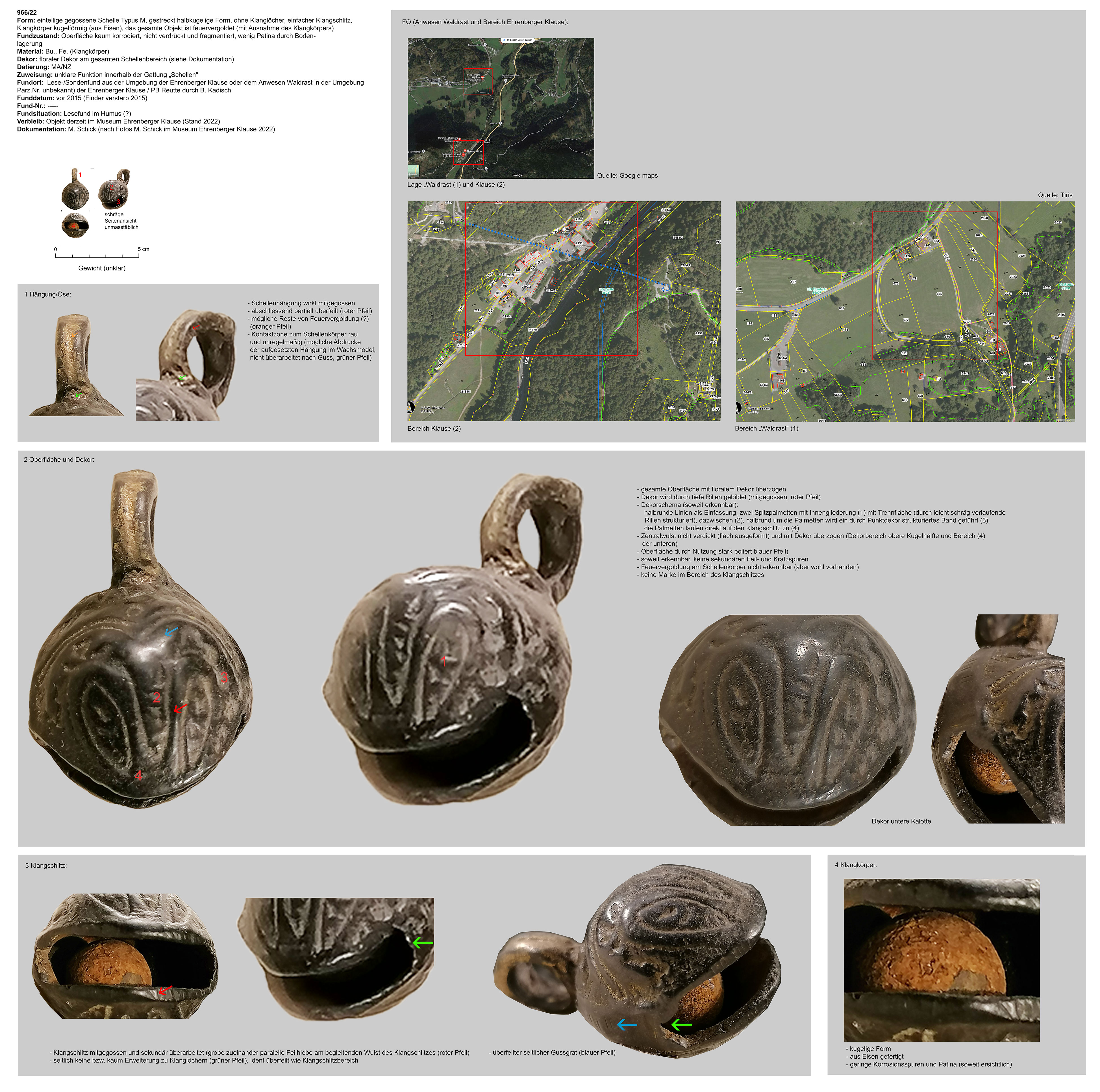 | 966/22 | einteilig | kugelig, Eisen | Ehrenberger Klause oder dem Anwesen Waldrast, PB Reutte (B. Kadisch) | Tallage (Sonden-/Lesefund) | 1, D2; keine Marke |