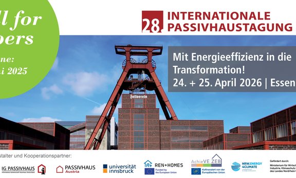 Die Universität Innsbruck ist auch 2026 wieder Mitveranstalterin der Internationalen Passivhaustagung IPHC2026. Die Konferenz findet am 24. und 25. April 2026 im Haus der Technik in Essen statt . Unter dem Motto „Mit Energieeffizienz in die Transformation!“ versammelt sie Hunderte motivierte Baufachleute aus aller Welt. Der Call for Papers ist ab sofort geöffnet und läuft bis zum 30. Juni 2025. Ergänzt wird das Programm durch interaktive Zusatz-Workshops am 23. April 2026 sowie spannende Exkursionen am 26. April 2026 zu hoch energieeffizienten Gebäuden in Essen und Umgebung. Mehr Details unter https://passivhaustagung.de/de/tagung/.