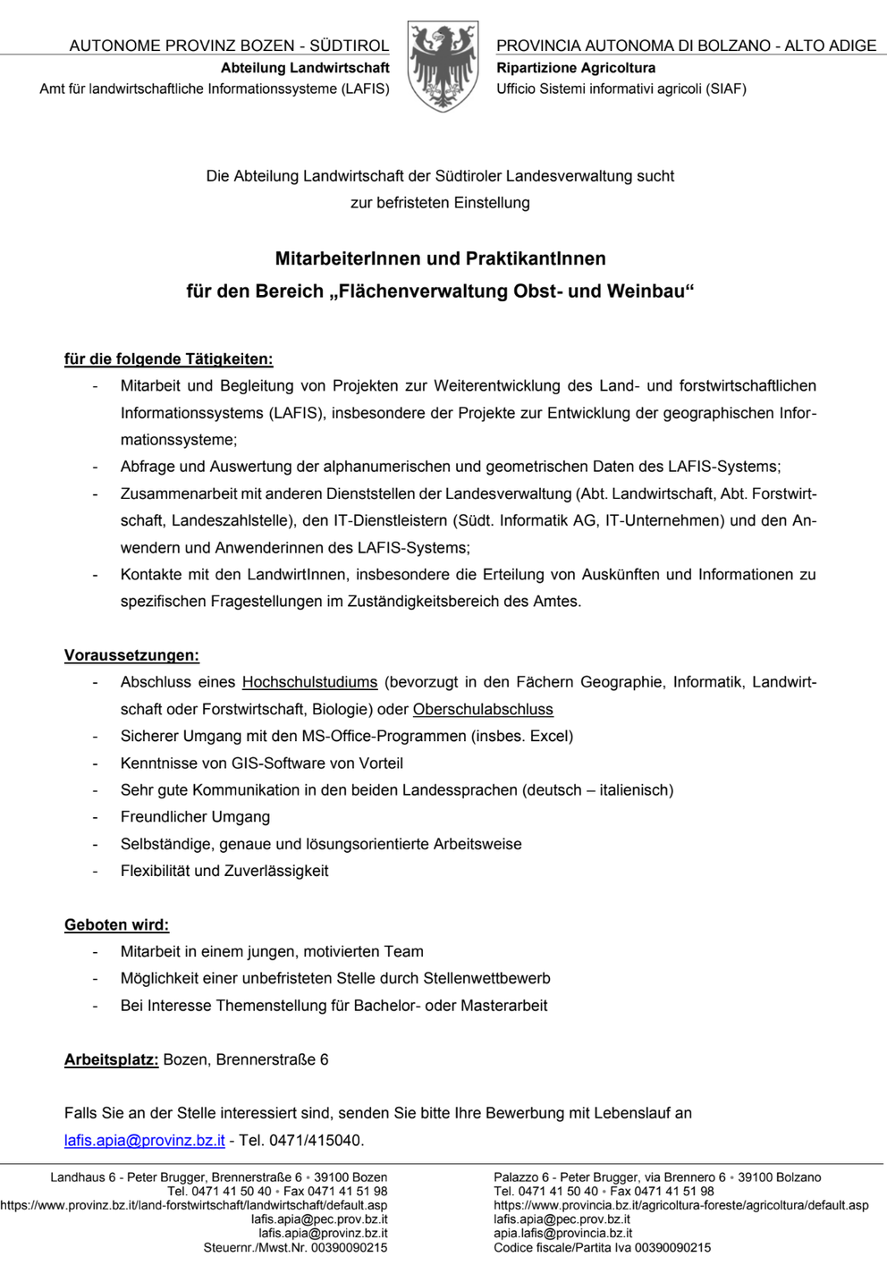 in der Abteilung Landwirtschaft der Südtiroler Landesverwaltung