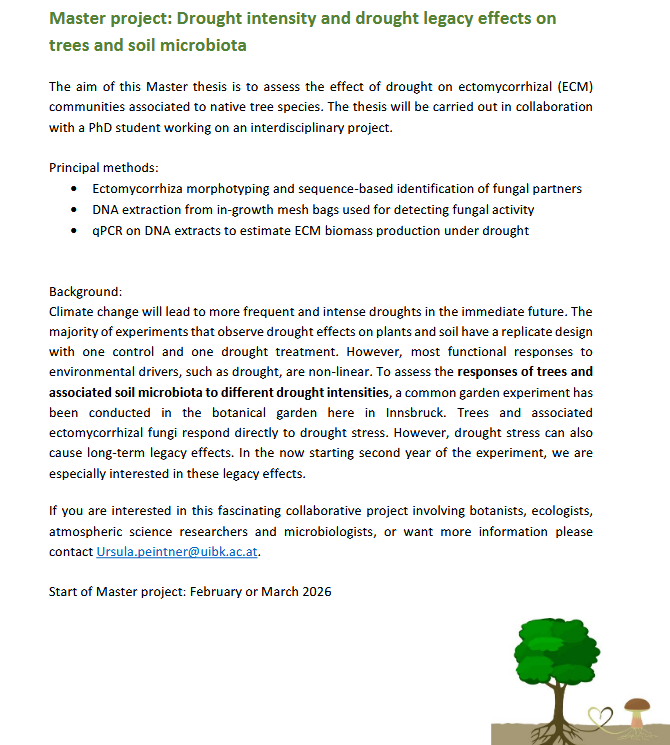 with a PhD student working on an interdisciplinary project. If you are interested or want more information please contact Ursula.peintner@uibk.ac.at.