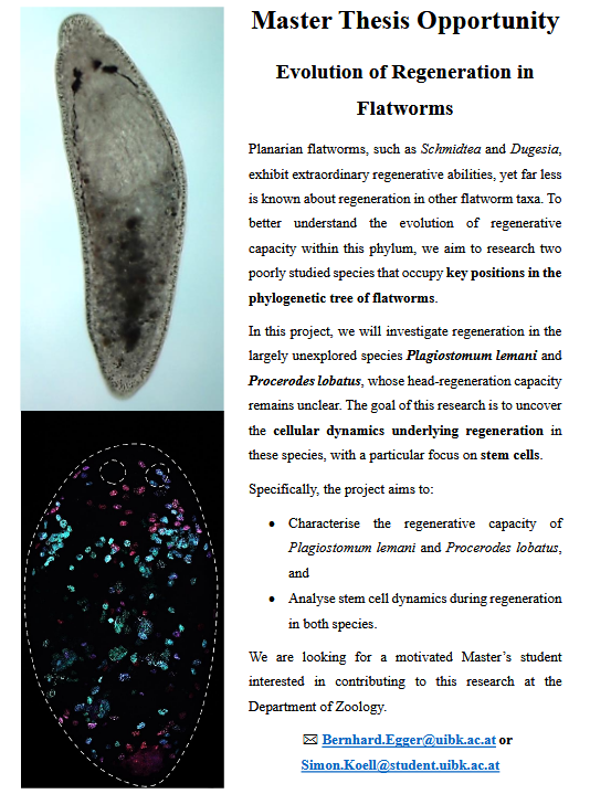 Master Thesis Opportunity: Evolution of Regeneration in Flatworms