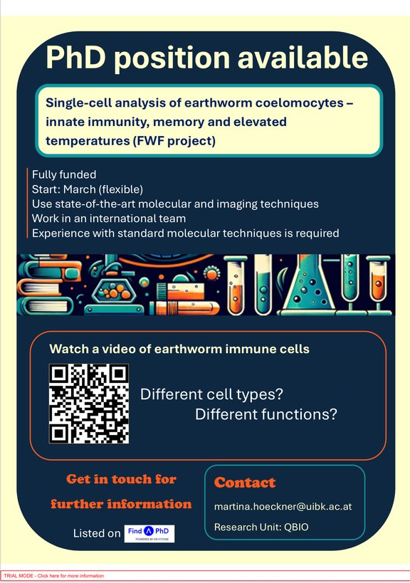 PhD-Postion available: Single-Cell Analysis of Earthworm Immune Cells (FWF Project)