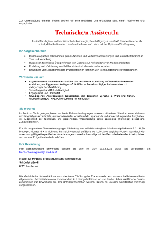 Technische/r Assistent/in am Institut für Hygiene und Medizinische Mikrobiologie