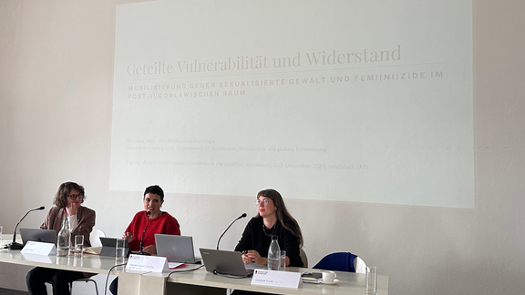 Die Tagungsorganisator*innen Friederike Beier, Gundula Ludwig und Laura Volgger (v.l.n.r.)