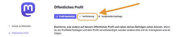 Wenn Sie eine eigene Website besitzen, können Sie diese als verifizierten Link hinzufügen. Dieser wird dann grün hinterlegt angezeigt. Klicken Sie dazu oben auf den Reiter „Verifizierung“: