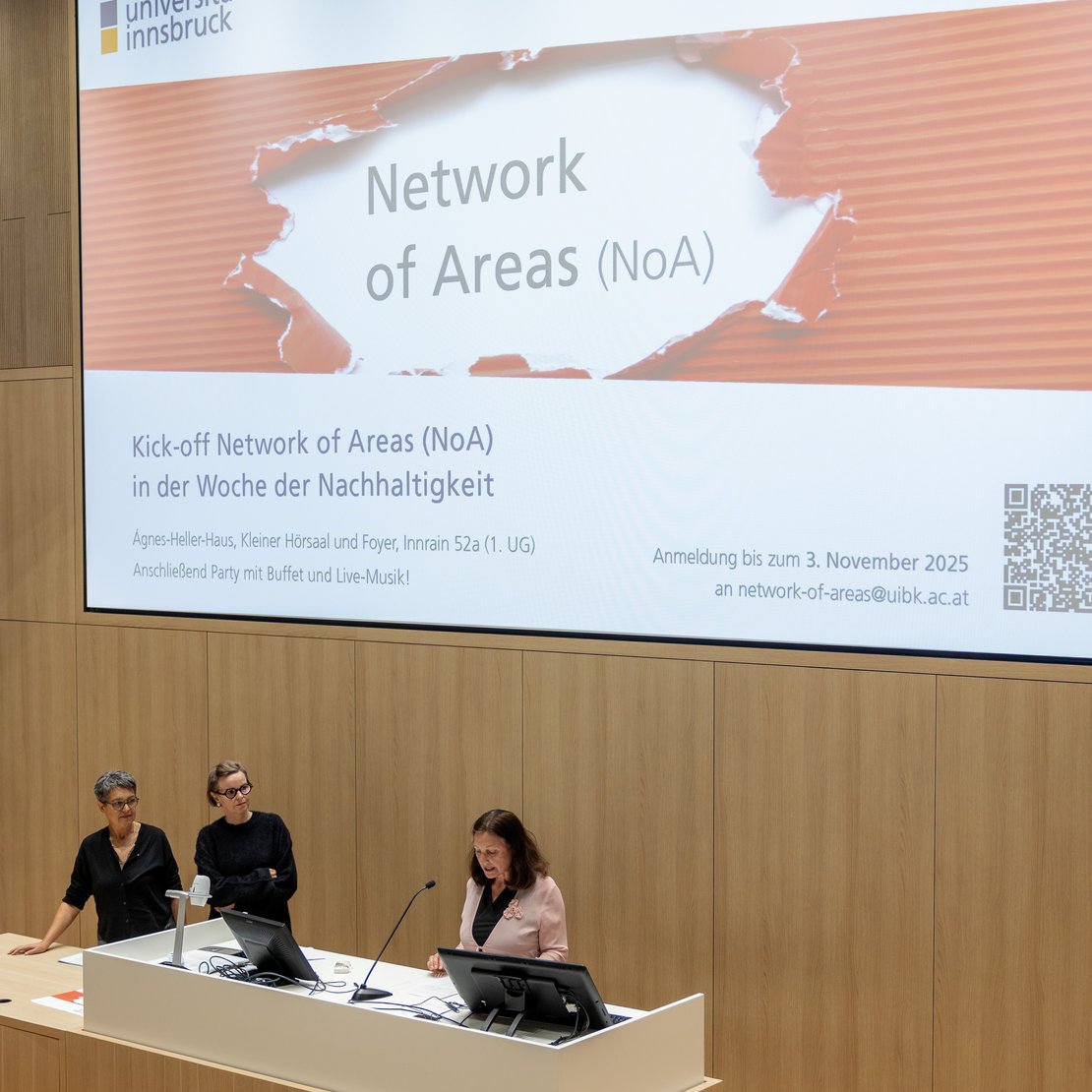 Am 10. November 2025 feierte die Universität Innsbruck den offiziellen Start des Network of Areas (NoA): Die Veranstaltung fand im Kleinen Hörsaal des Ágnes-Heller-Hauses statt und brachte Vertreter:innen der verschiedenen Gremien – Universitätsrat, Senat, Rektorat, Dekan:innen, Studiendekan:innen, Betriebsräte, AKG sowie ÖH – und weitere inner- wie außeruniversitäre Gäste wie die litauische Botschafterin Lina Rukštelienė zusammen.