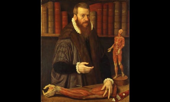Nicolas Juvenel (vor 1540–1597; zugeschrieben), Bildnis des Stadtarztes Volcher Coiter mit anatomischem Präparat, 1575, Öl auf Leinwand, H. 101 x B. 88 cm