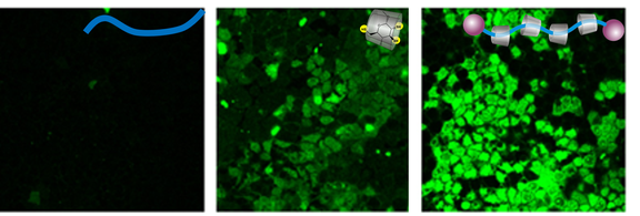 Polyrotaxane sind supramolekulare Strukturen, die aus polymeren Achsen und aufgefädelten Makrozyklen bestehen. Wir synthetisieren diese Materialien, um die zelluläre Aufnahme der Makrozyklen zu verbessern und ihre membranschädigenden Effekte zu reduzieren.