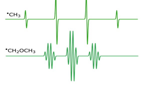 Analyse von Stoffen mit ungepaarten Elektronen (z.B. paramagnetische Komplexe, freie Radikale)