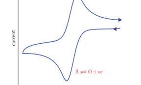 - Bei der Cyclovoltammetrie wird die Spannung an einer Elektrode zyklisch verändert und der resultierende Strom gemessen. Dabei entsteht ein charakteristisches Strom-Spannungs-Diagramm (Cyclovoltammogramm), das Informationen über Redoxprozesse liefert.