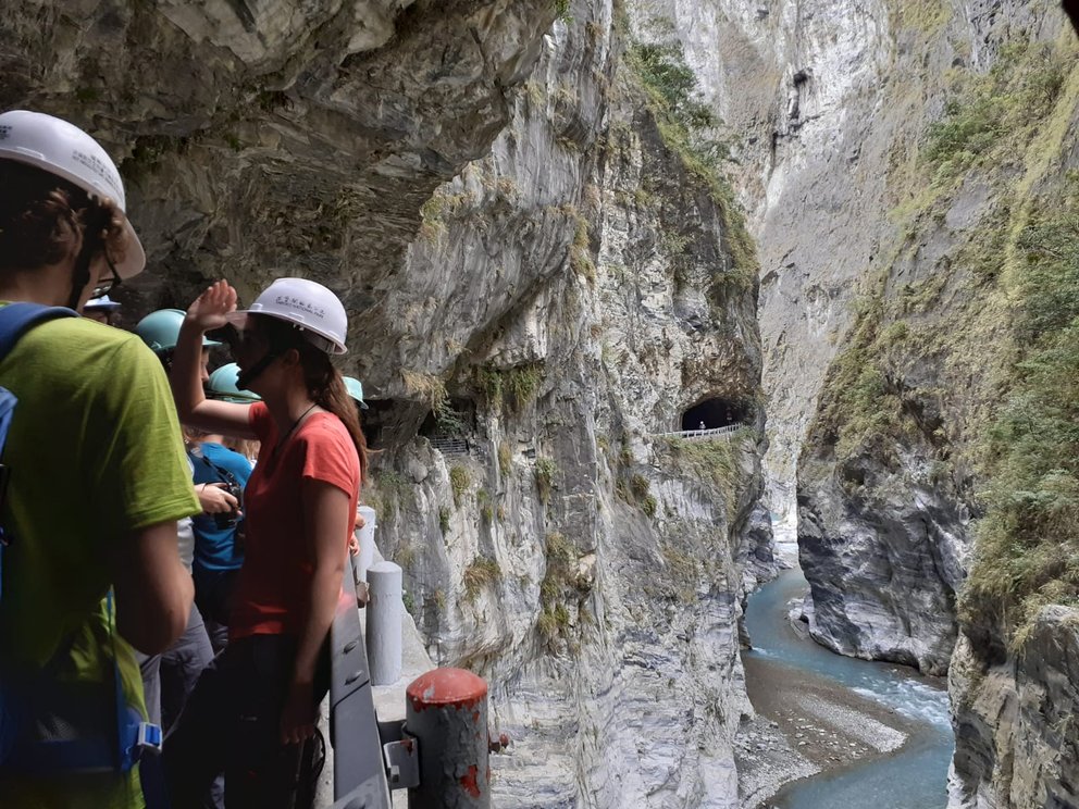 Day10: The Taroko Gorge expose spectacular outcrops of meta-sediments and ductile deformation structures of the Central Range Metamorphic Belt in the exhumed core of the Taiwan Orogen (Photo by N.Dörr)