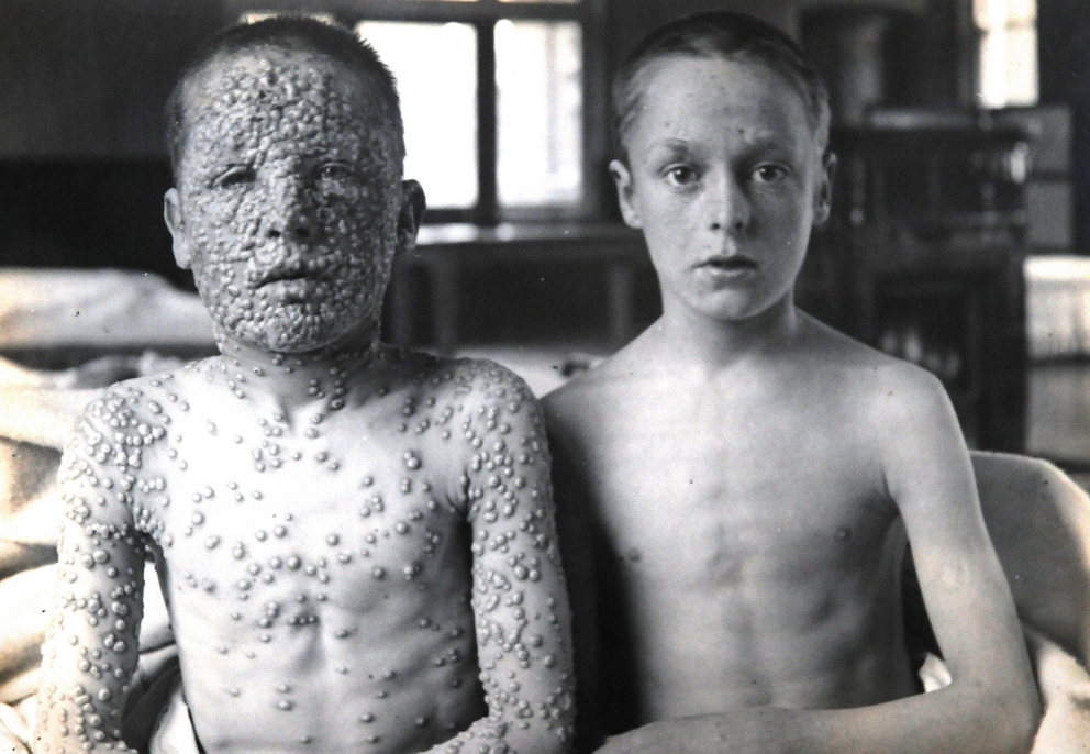 Abbildung 1: zwei Kinder mit Pockenerkrankung