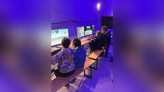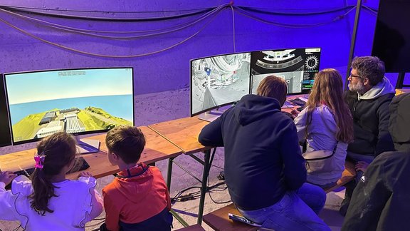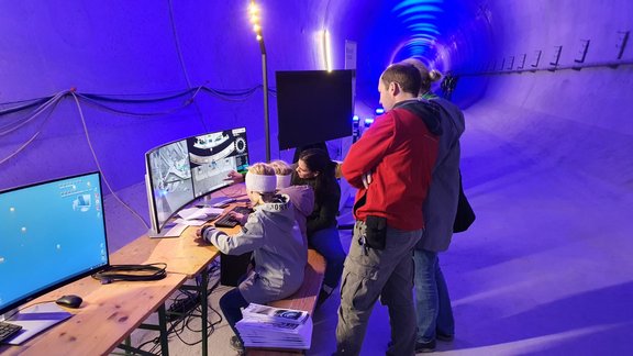 An unserem Stand gab es gleich zwei interaktive Highlights zu entdecken: Zum einen konnten Besucherinnen und Besucher selbstständig durch das digitale Baustelleneinrichtungsmodell der H41-Fläche navigieren – wahlweise über VR-Brille oder direkt am Bildschirm. So wurde die bekannte Baustelle, die unmittelbar an der Brennerautobahn liegt, aus einer völlig neuen Perspektive erlebbar. Zum anderen sorgte der Tübbing-Erektor-Simulator für Begeisterung bei Groß und Klein. Nachdem man an den vorherigen Stationen bereits ein echtes Tübbingsegment und ein TBM-Modell (Tunnelbohrmaschine) bewundern konnte, hieß es bei uns: Selbst Hand anlegen! Mit Geduld, Präzision und Konzentration konnten die Besucherinnen und Besucher die Steuerung übernehmen und ein Tübbingsegment virtuell positionieren – ganz wie die Profis beim Tunnelvortrieb.