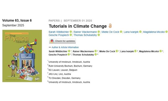 Wie kann man im Physik-, Chemie- oder Biologieunterricht den Klimawandel unterrichten und dabei Schülervorstellungen gezielt adressieren, um Schüler:innen bei der Entwicklung eines naturwissenschaftlichen Verständnisses zu unterstützen? Ein Ansatz sind Tutorials zum Klimawandel, die im Projekt Engaging von Sarah Wildbichler, Thomas Schubatzky und Kolleg:innen der Universitäten Bochum, Dresden und Leuven entwickelt wurden. In der aktuellen Ausgabe von The Physics Teacher ist dazu ein Artikel erschienen, in dem die didaktischen Konzepte hinter den Tutorials beleuchtet und ihre Lernwirksamkeit untersucht werden. Die Tutorials zum Klimawandel sind unter https://engagingforclimate.eu/de/resources frei verfügbar und direkt im Unterricht einsetzbar.