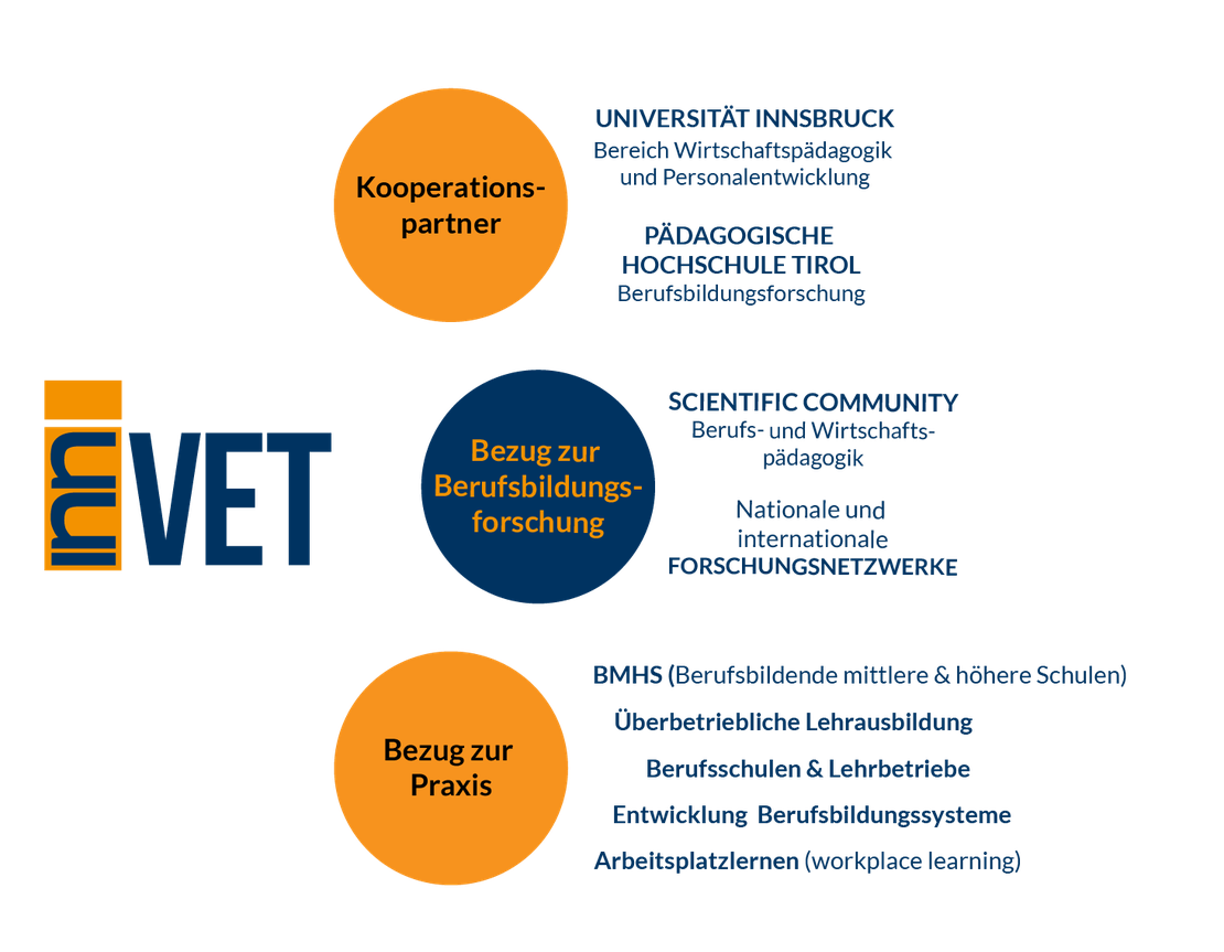 Der InnVET-Cluster in Innsbruck stärkt die Kooperation zwischen Berufsbildungsforschung und Berufsbildungspraxis. Die universitäre Verankerung ermöglicht interessenspolitisch unabhängige Forschung. Auf Basis dieser Arbeit werden Beiträge für Innovationen in der österreichischen Berufsbildung geschaffen.