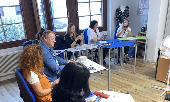 In einer anschließenden kollaborativen Arbeitsphase erarbeiteten Tandems – jeweils bestehend aus zwei Trainer:innen von KAOS und einem Mitglied des Projektteams der Universität Innsbruck – erste prototypische Entwürfe der LAS-Karten auf Basis vordefinierter didaktischer Formatvorlagen. Diese wurden daraufhin im Plenum präsentiert und einer kritischen Reflexion unterzogen, wobei wertvolle Anregungen für die weiterführende Überarbeitung gesammelt wurden. Im Zuge dieser Diskussionen konnte das Team der Universität Innsbruck zudem vertiefte Einblicke in die praktischen Herausforderungen sowie die methodisch-didaktischen Anforderungen des Lehralltags bei KAOS gewinnen.